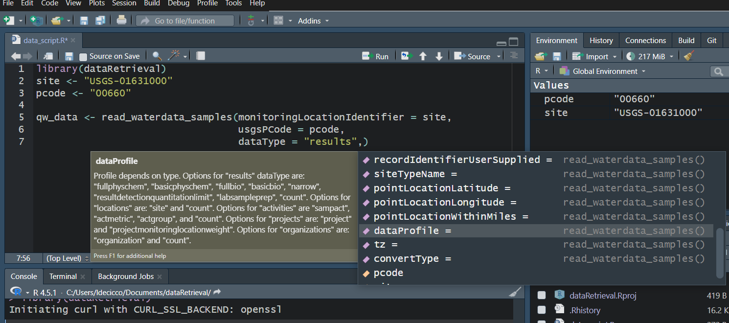 There’s been a lot of changes to dataRetrieval over the past year. If you’d like to see an overview of those changes, visit: Changes to dataRetrieval